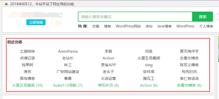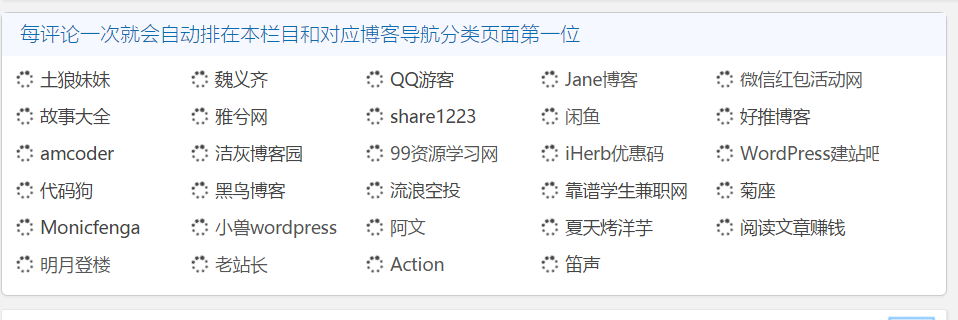 先解释一下,这个【动态友链】主要是我为了方便取的名字,估计没有人知道这个功能叫什么,也没有专门的称呼,所以我们给他命名为动态友情链接;最近看到很多wp程序的博客首页都有这么一个模块,显示的是最近评论了网站访客的友情链接,这个版块展示效果如下所示;