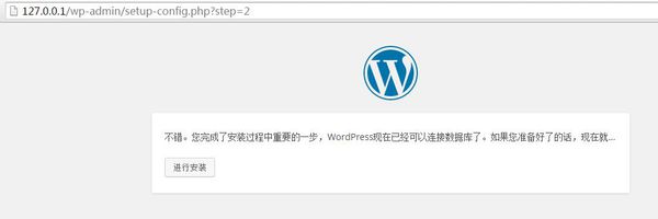 4、当出现上图界面,证明我们的数据库配置成功,这一步很重要,很多新手SEOer都会在这里出错,所以要细心填写对应的数据库信息。接下来点击“进行安装”按钮;