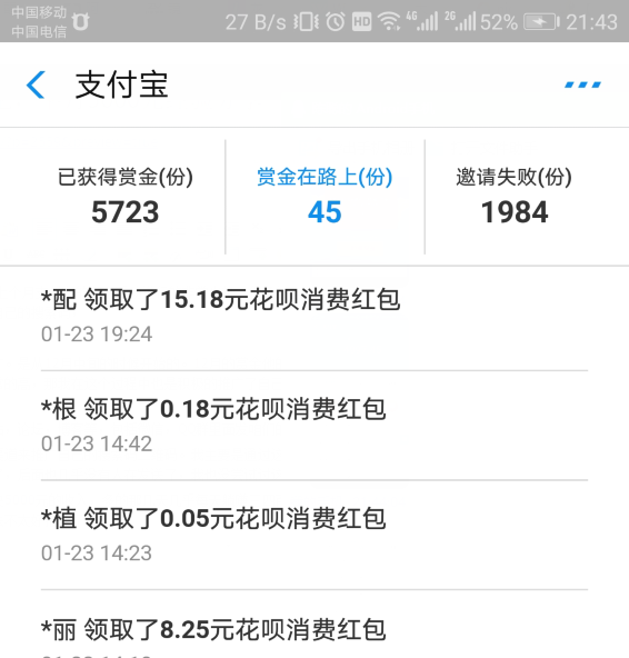 当然还算不错,通过半个月的推广,解决5000元的收入,多的那几天几乎每天躺赚三四百的,这羊毛薅的还算是过瘾,不过听说很多人几万几十万的收入的也是很多的,所以只能说阿里的羊毛确实很实在啊!当然目前似乎金额一斤非常的低了,最低一两分钱的都有了,所以也没法不太好推广了,大家的积极性也低了。