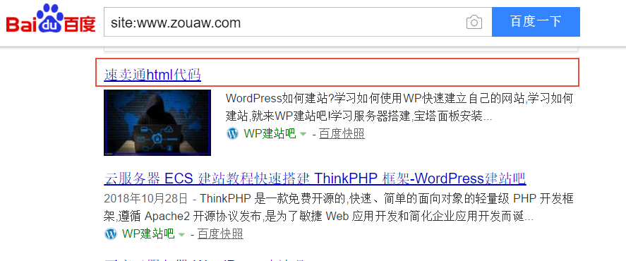 当时在百度搜索的结果页面上展示的结果是:通过site:www.zouaw.com获取到的结果是这样的,所以表示很疑惑;