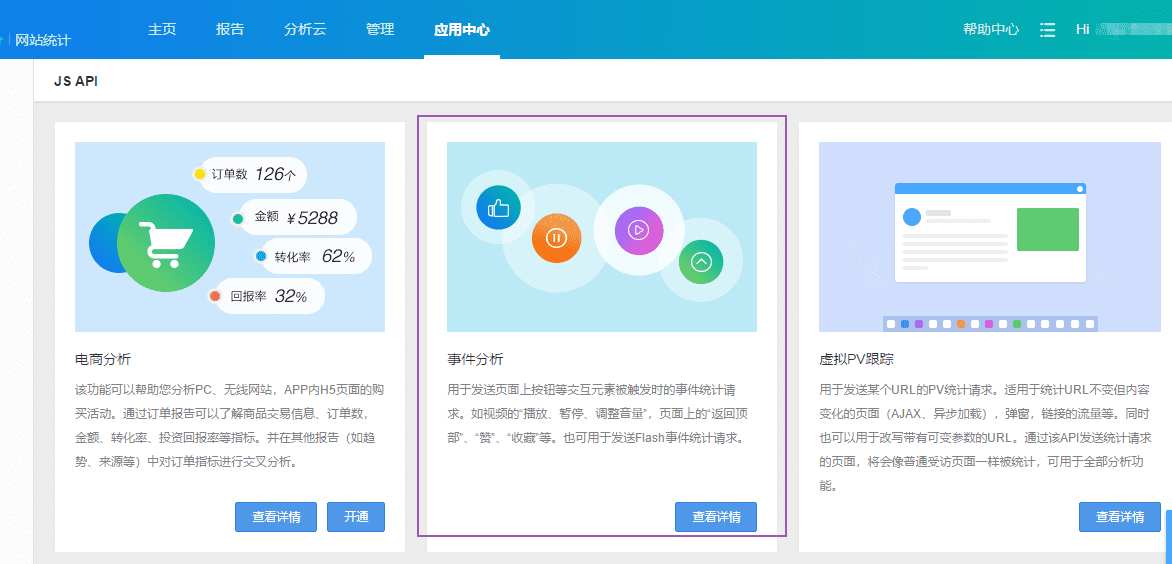利用百度统计的事件分析:百度统计-应用中心里有个叫做事件分析的功能,用于发送页面上按钮等交互元素被触发时的事件统计请求。如视频的“播放、暂停、调整音量”,页面上的“返回顶部”、“赞”、“收藏”等。也可用于发送Flash事件统计请求。