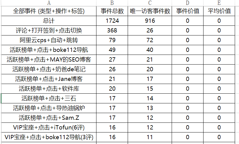 利用百度统计的事件分析查看网页上各元素的点击情况,这块内容想要看到和跟踪各个链接的点击情况,靠百度统计基础代码几乎无法实现,因为跳转到了站外其他网站去了,只有通过事件分析来实现。 以下是这块内容各个链接的点击数最近7天的数据: