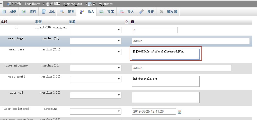 1、登陆我们的数据库,一般都有安装phpmyadmin之类的,反正就是登陆我们的数据库,然后找到wp_users表