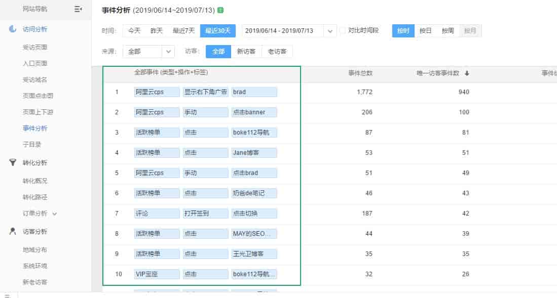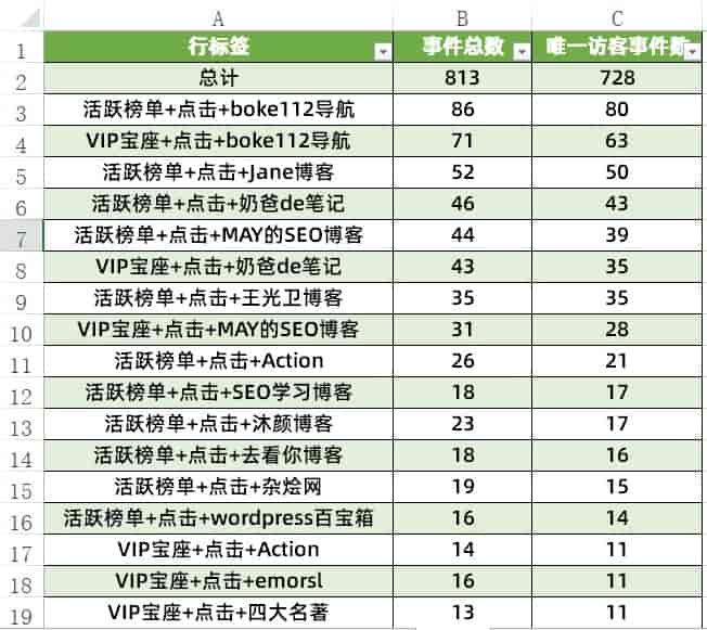 以上数据来自百度统计事件分析,统计数据为链接的点击次数,点击人数。一下是下载的百度统计后台的数据;