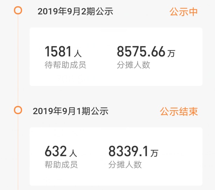 刚刚公布了第二期的互助人数,查询到的结果是待帮助人数为1581人,我记得前几次的人数是六百多人吧,突然激增了两倍多确实够吓人的了,未来估计还会进一步增加,本期分摊金额为2.96。