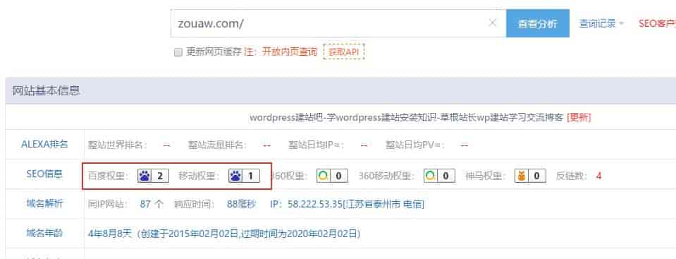 今天Chinaz统计的百度权重终于蹦到2了