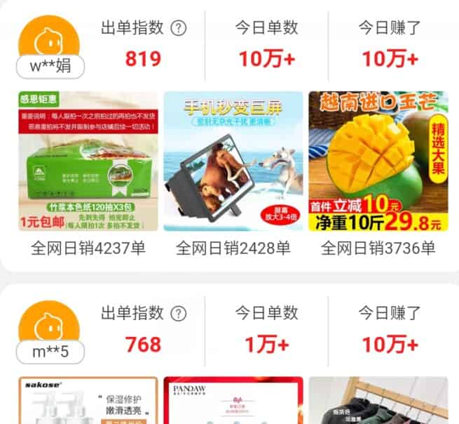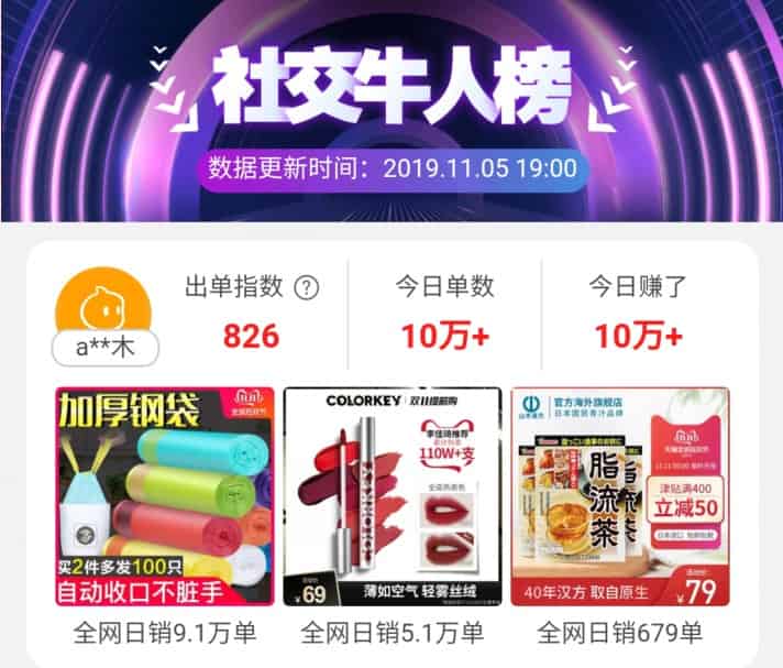 最近又想搞一搞淘宝客了,看到阿里联盟中很多推广的大淘宝社交牛人榜,每天的收入都是几万或者是10万+,虽然不清楚具体情况,不过看到这些还是很诱人的,他们每天推广成单数都在十万单以上,而且大多是推广的那种热销产品,几毛钱几块钱的那种,性价比普遍很高的商品,一天那些单品销量就有几千单的。