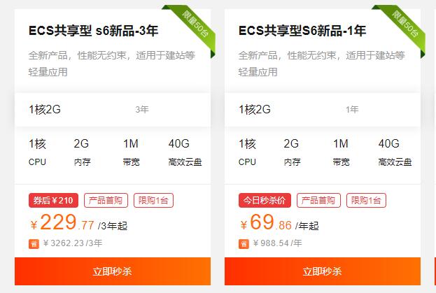2、服务器可以考虑靠谱一点的,比如阿里云百度腾讯云,这里推荐阿里云的新产品主机,ECS共享型S6新品-1核2G/1年69元全新产品,性能无约束。这个配置对于大部分个人用户来说足够用了的,而且买3年只要229元,可以说非常的划算。购买地址(复制到浏览器打开):https://www.aliyun.com/minisite/goods?source=5176.11533457&userCode=cb3vgkf5