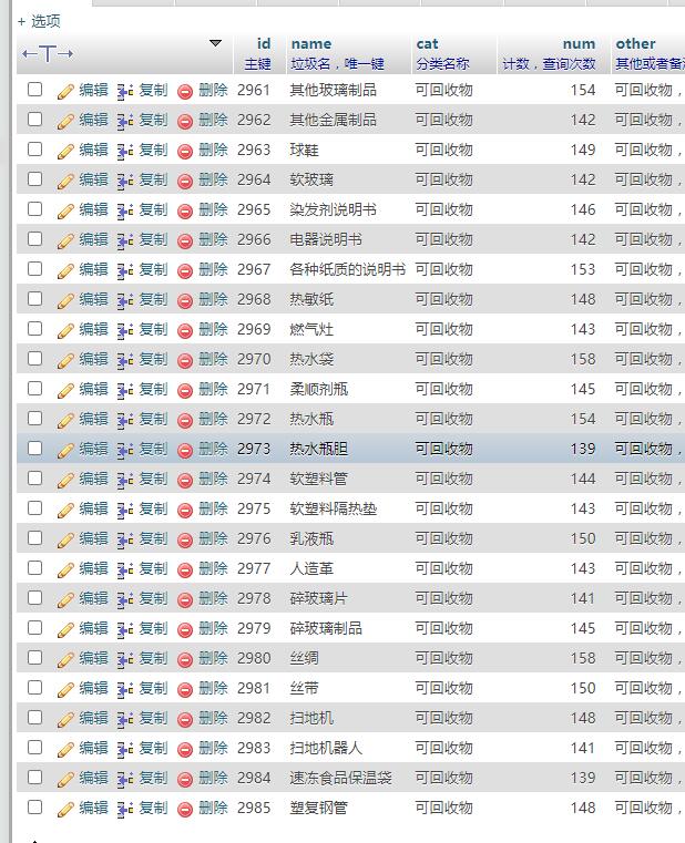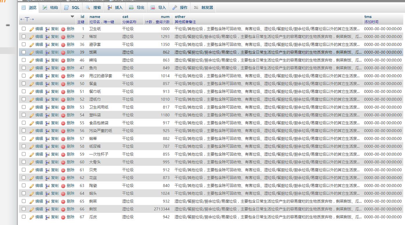 垃圾分类数据库,包含海量(超过6700条+)常见的垃圾数据,文件格式为mysql(.sql)或者csv格式文件;