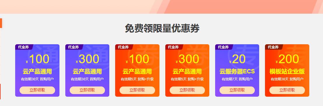 阿里云代金券购买 阿里云代金券购买可以么?一般没法转让或者是购买阿里云代金券的,但是一般如果老用户无法享受优惠可以找个新账户新人来注册一个。一般购买阿里云ECS服务器年付时会有8.5折或7.5折(机房不同折扣可能不同),使用这个权益后可以再叠加满2000减1000。 免费领限量优惠券,偷偷告诉你,这里的云服务器82元/年起。阿里云服务器